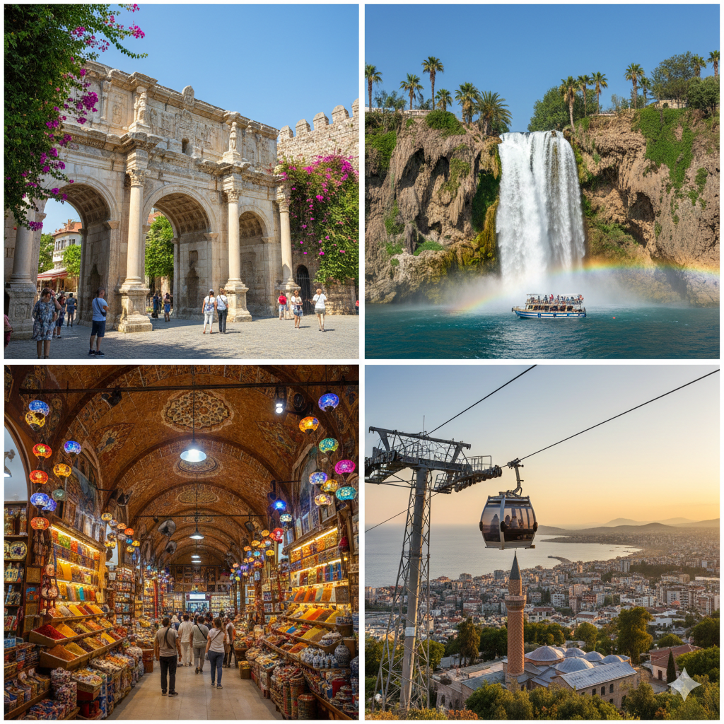 - Along the way, we will visit the Duden Waterfalls. Afterwards, you will have a free time at Antalya Bazaar where you can go shopping.