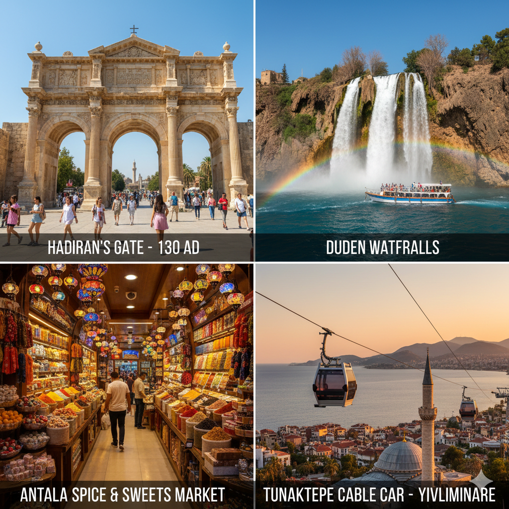 - Along the way, we will visit the Duden Waterfalls. Afterwards, you will have a free time at Antalya Bazaar where you can go shopping.