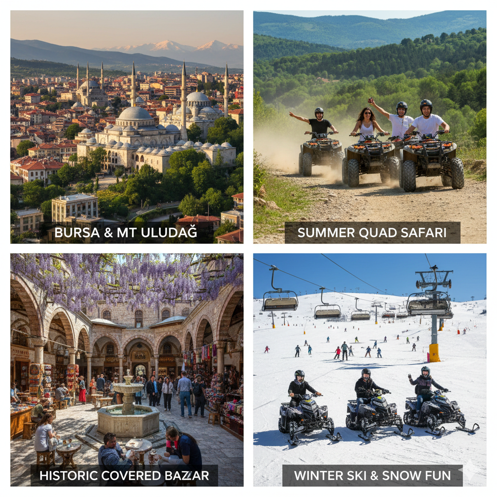 Across the Marmara Sea from Istanbul and nestled on the slopes of Mt Uludag is the beautiful city of Bursa known as the birthplace of the Ottoman Empire. Join us for a long day tour to visit the city’s many UNESCO world heritage listed sites, magnificent mosques, the covered bazaar and the silk market. The day’s tour also takes you to Mt Uludag where you are free to wander on your own or you may prefer to go on a quad bike safari or snow ski during the winter.